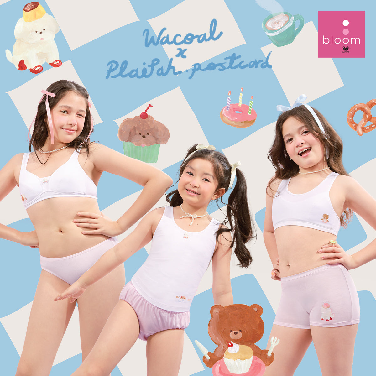 Wacoal Bloom Step 3 ชุดชั้นในสำหรับเด็ก เสื้อในเด็กลาย Plaifah.postcard รุ่น WB1Y13 สีขาว (WH)