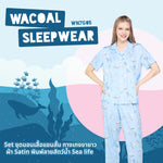 Wacoal Sleep wear ชุดนอนรูปแบบเสื้อแขนสั้น คอฮาวาย กระดุมผ่าหน้า พร้อมกางเกงขายาว ผ้า Satin พิมพ์ลายUNDER SEAแสนน่ารัก ผลิตจากผ้า Polyester 100% ให้สัมผัสที่ลื่น นุ่มสบายยามสวมใส่ ดูแลรักษาง่าย แห้งเร็ว