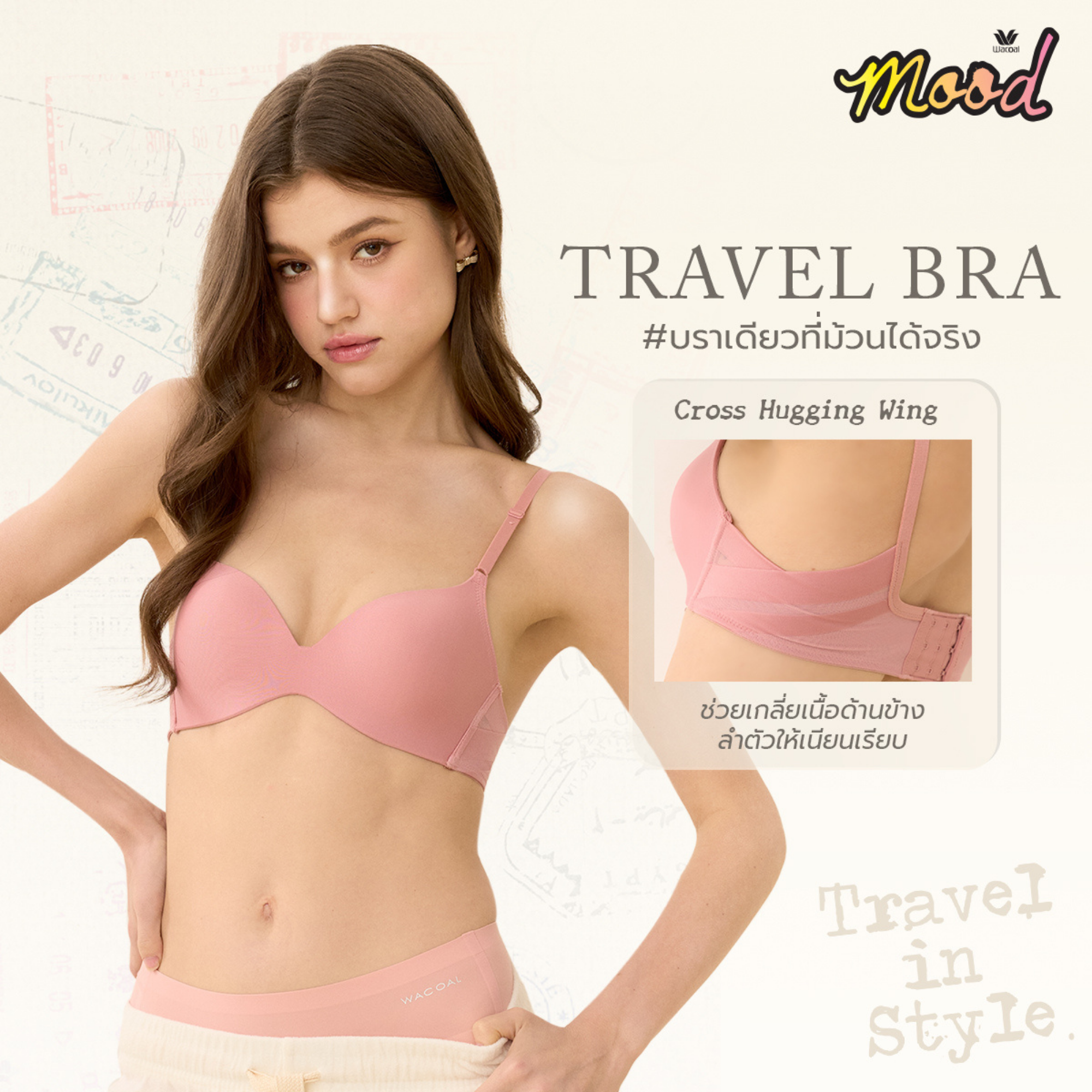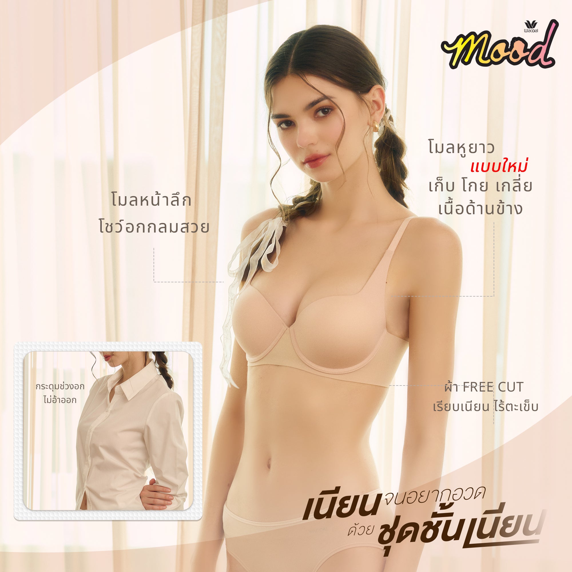Wacoal Mood ชุดชั้นเนียน บราไร้โครง Smart Size เสริมฟองน้ำ รุ่น MM1Y24 สีดำ (BL)