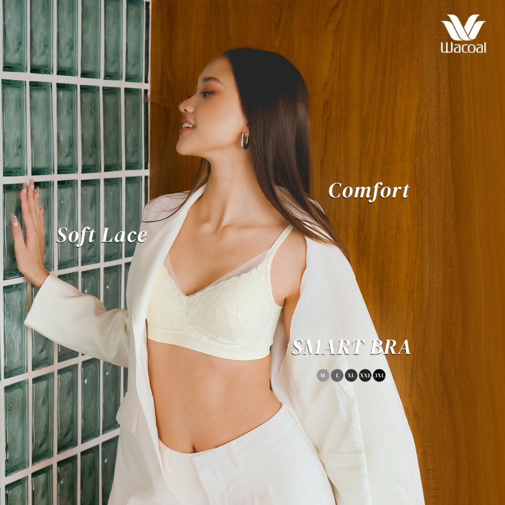 Wacoal บราไร้โครง Smart size ผ้าร่องแต่งลูกไม้ เซท 3 ชิ้น รุ่น WB3Y38/WB3338 คละสี